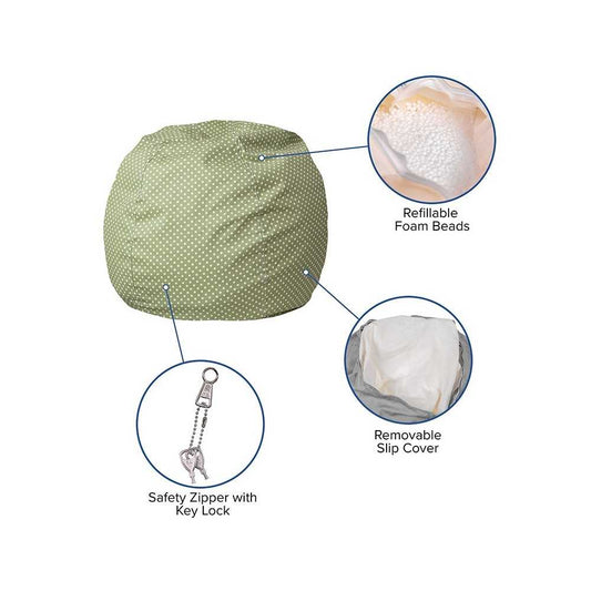 Small Green Dot Bean Bag Chair for Kids and Teens