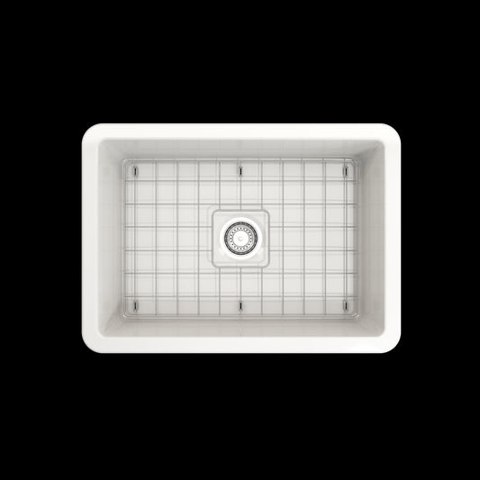 Sotto Undermount Fireclay 27 in. Single Bowl Kitchen Sink with Protective Bottom Grid and Strainer in White