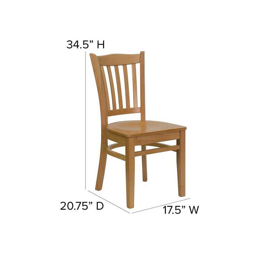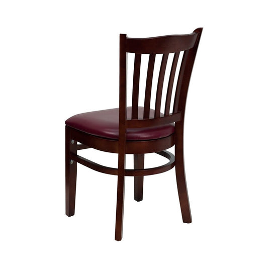 Vertical Slat Back Mahogany Wood Restaurant Chair - Burgundy Vinyl Seat