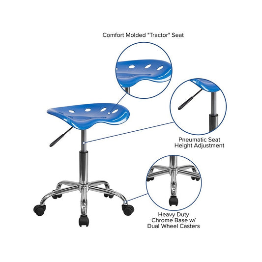 Vibrant Bright Blue Tractor Seat and Chrome Stool