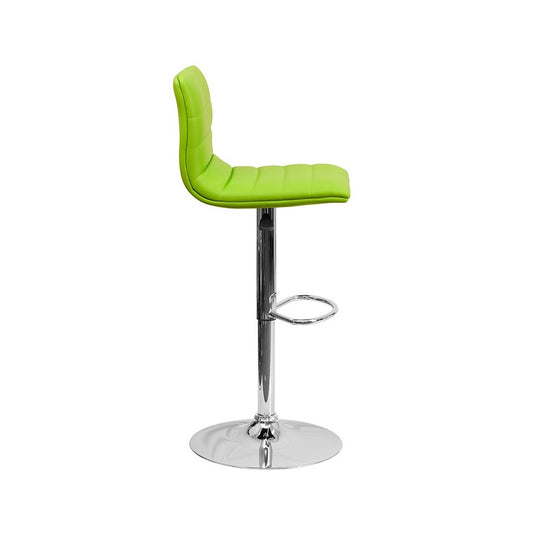 Modern Green Vinyl Adjustable Bar Stool with Back, Counter Height Swivel Stool with Chrome Pedestal Base