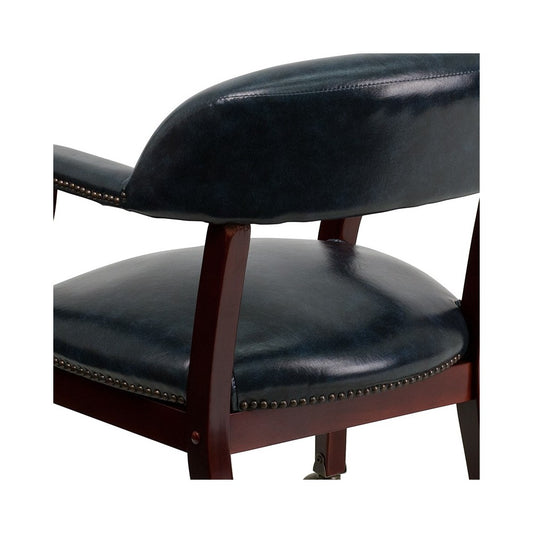 Navy Vinyl Luxurious Conference Chair with Accent Nail Trim and Casters