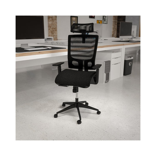 Office Chair with Synchro-Tilt, Pivot Adjustable Headrest, Lumbar Support, Coat Hanger and Adjustable Arms in Black