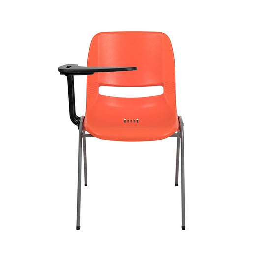 Orange Ergonomic Shell Chair with Right Handed Flip-Up Tablet Arm