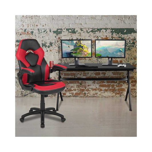 Gaming Desk and Red/Black Racing Chair Set /Cup Holder/Headphone Hook/Removable Mouse Pad Top - 2 Wire Management Holes