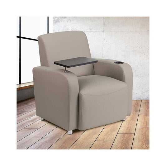 Gray LeatherSoft Guest Chair with Tablet Arm, Chrome Legs and Cup Holder