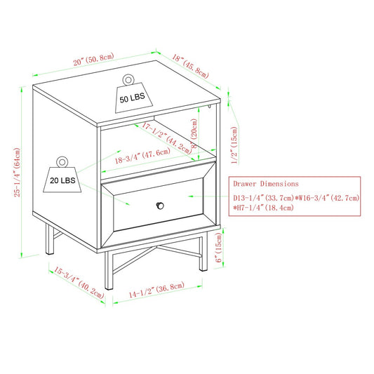 Gwen 20" 1 Drawer Modern Nightstand - Dark Walnut
