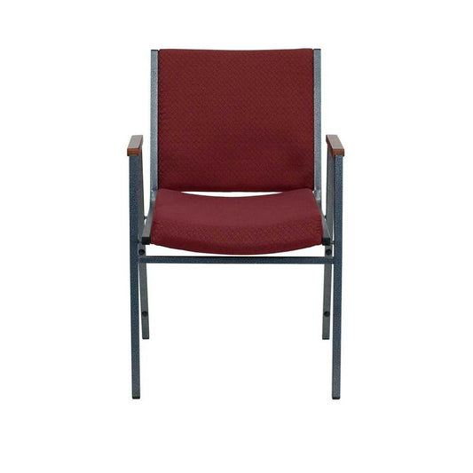 Heavy Duty Burgundy Patterned Fabric Stack Chair with Arms