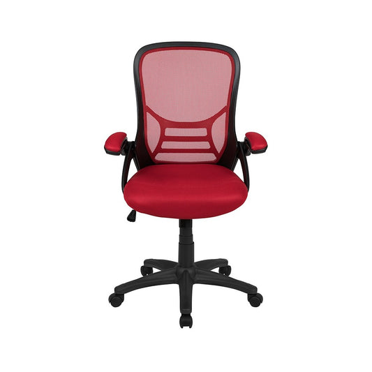 High Back Red Mesh Ergonomic Swivel Office Chair with Black Frame and Flip-up Arms