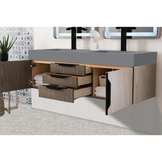Mercer Island 59" Double Vanity Ash Gray Black w/Dusk Gray Glossy Composite Top