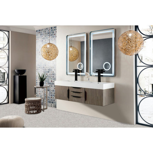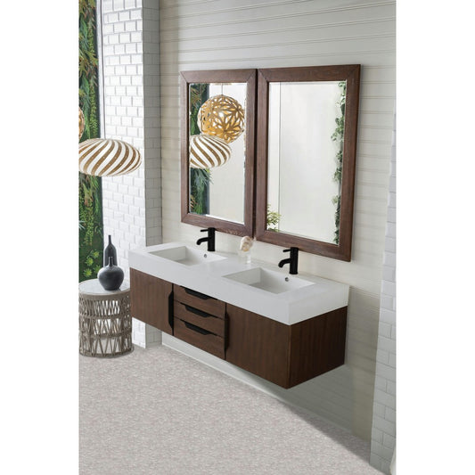Mercer Island 59" Double Vanity Latte Oak Black w/Glossy White Composite Top