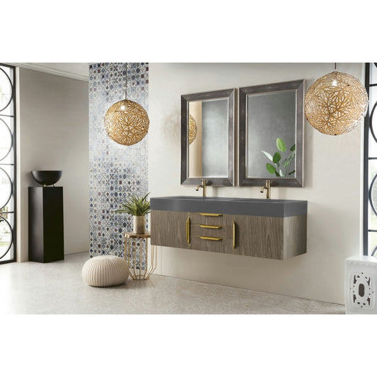 Mercer Island 59" Double Vanity Ash Gray Radiant Gold w/Dusk Gray Composite Top