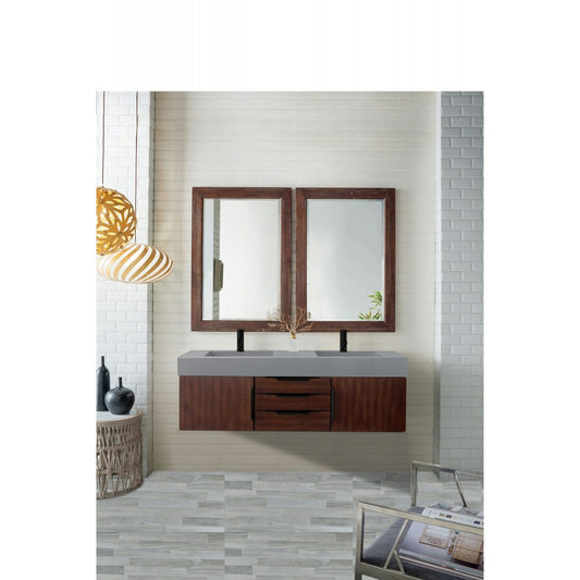 Mercer Island 59" Double Vanity Coffee Oak Black w/Dusk Gray Composite Top