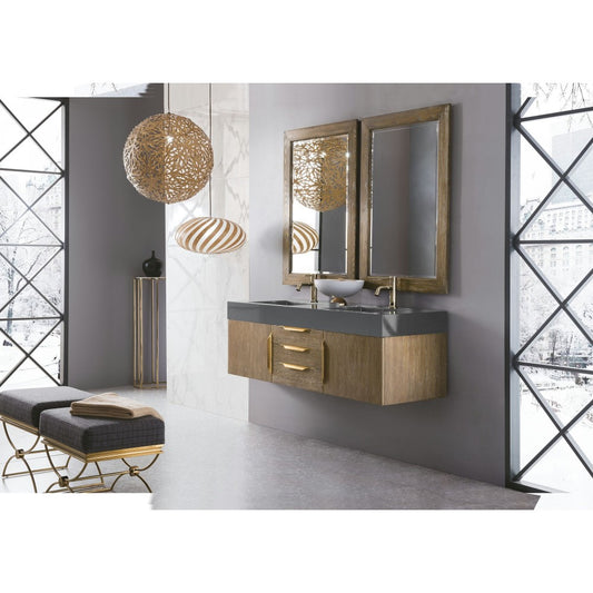 Mercer Island 59" Double Vanity Latte Oak Radiant Gold,Dusk Gray Composite Top