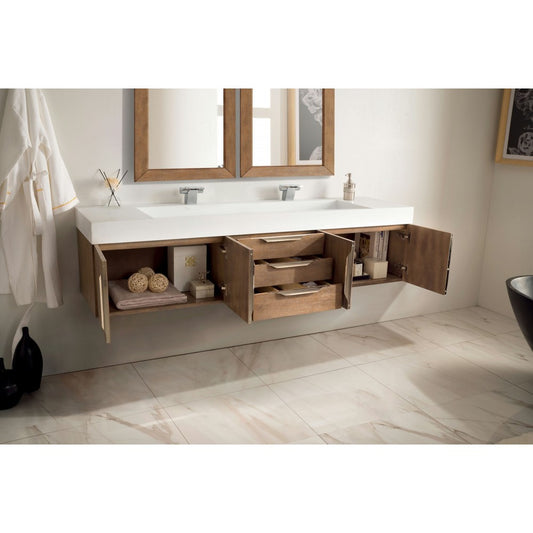 Mercer Island 72" Double Vanity, Latte Oak w/ Glossy White Composite Top