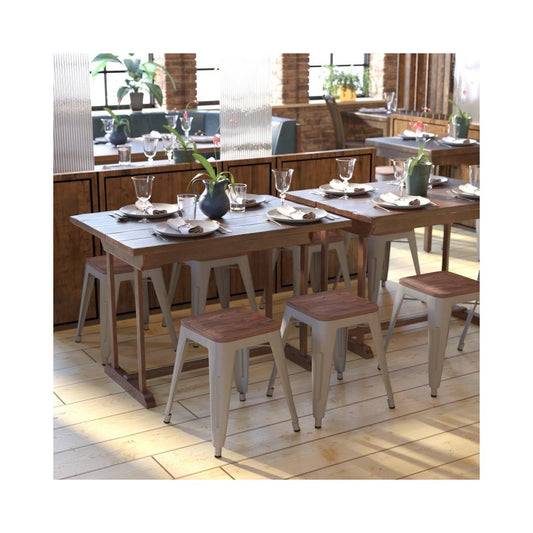 Flash Furniture Kai 4PK Silver Stool-Wood Seat ET-BT3503-18-SIL-WD-GG