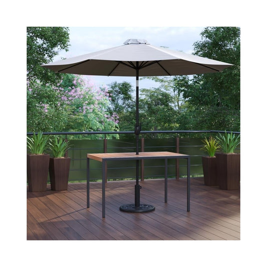Flash Furniture Lark Faux Teak Patio Table-Umbrella XU-DG-UH8100-UB19BTN-GG
