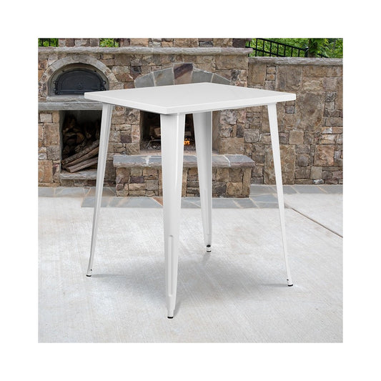 Commercial Grade 31.5" Square White Metal Indoor-Outdoor Bar Height Table