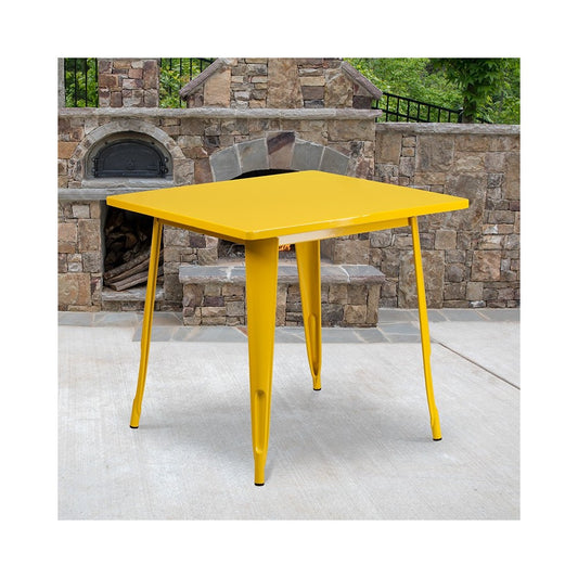 Commercial Grade 31.5" Square Yellow Metal Indoor-Outdoor Table