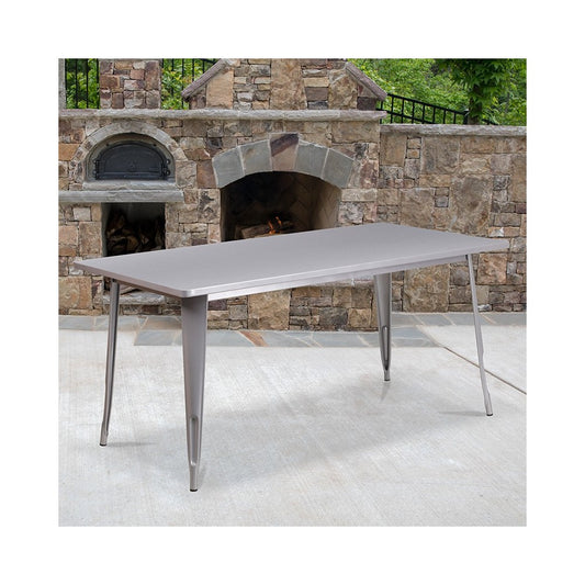 Commercial Grade 31.5" x 63" Rectangular Silver Metal Indoor-Outdoor Table