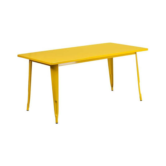 Commercial Grade 31.5" x 63" Rectangular Yellow Metal Indoor-Outdoor Table Set with 4 Stack Chairs