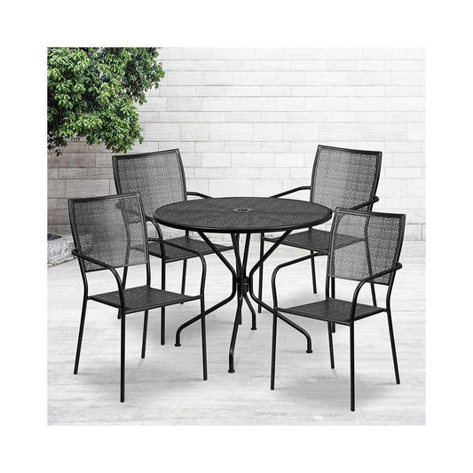 Commercial Grade 35.25" Round Black Indoor-Outdoor Steel Patio Table Set with 4 Square Back Chairs