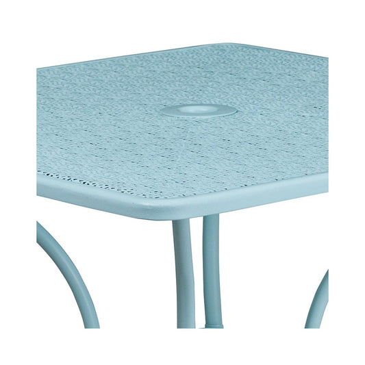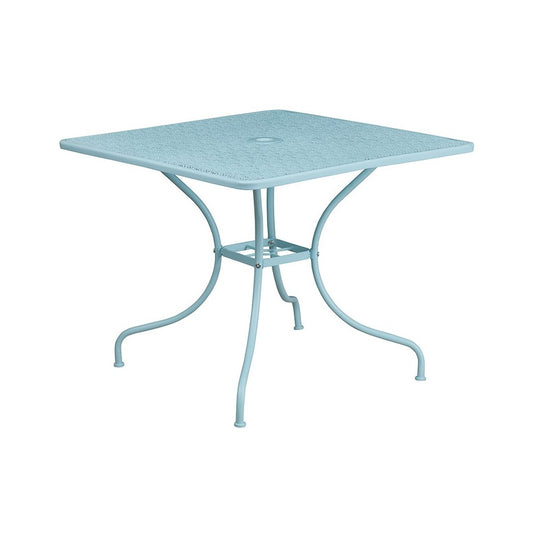 Commercial Grade 35.5" Square Sky Blue Indoor-Outdoor Steel Patio Table