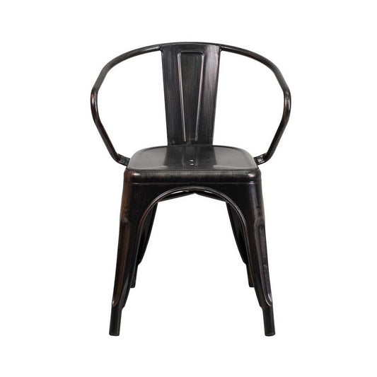 Commercial Grade Black-Antique Gold Metal Indoor-Outdoor Chair with Arms