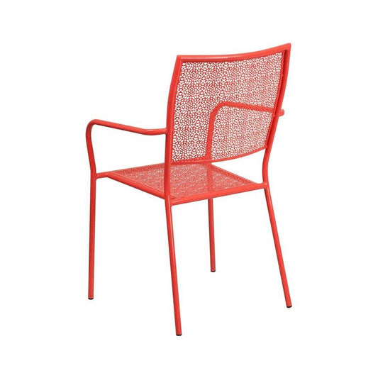 Commercial Grade Coral Indoor-Outdoor Steel Patio Arm Chair with Square Back