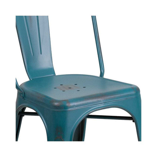 Commercial Grade Distressed Kelly Blue-Teal Metal Indoor-Outdoor Stackable Chair