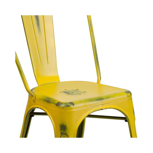 Commercial Grade Distressed Yellow Metal Indoor-Outdoor Stackable Chair