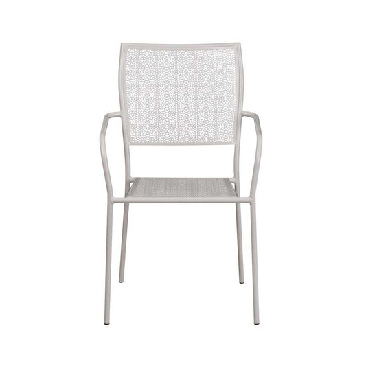 Commercial Grade Light Gray Indoor-Outdoor Steel Patio Arm Chair with Square Back