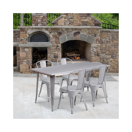 Commercial Grade 31.5" x 63" Rectangular Silver Metal Indoor-Outdoor Table Set with 4 Stack Chairs