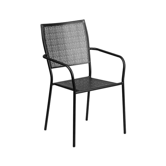 Commercial Grade 28" Square Black Indoor-Outdoor Steel Patio Table Set with 4 Square Back Chairs