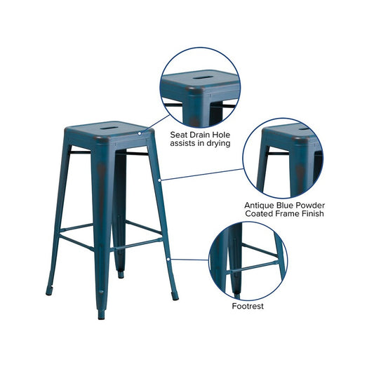 Commercial Grade 30" High Backless Distressed Antique Blue Metal Indoor-Outdoor Barstool