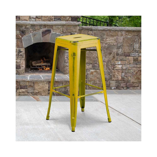 Commercial Grade 30" High Backless Distressed Yellow Metal Indoor-Outdoor Barstool
