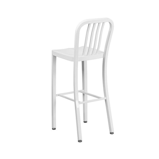 Commercial Grade 30" High White Metal Indoor-Outdoor Barstool with Vertical Slat Back