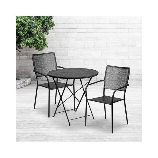 Commercial Grade 30" Round Black Indoor-Outdoor Steel Folding Patio Table Set with 2 Square Back Chairs
