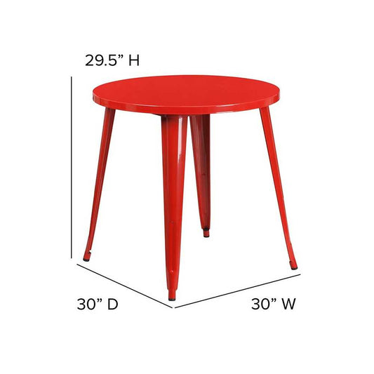 Commercial Grade 30" Round Red Metal Indoor-Outdoor Table