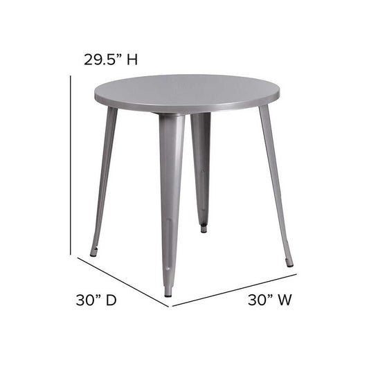 Commercial Grade 30" Round Silver Metal Indoor-Outdoor Table