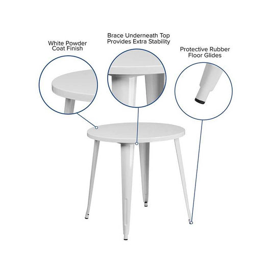 Commercial Grade 30" Round White Metal Indoor-Outdoor Table