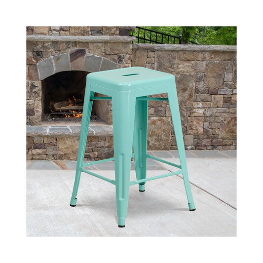 Commercial Grade 24" High Backless Mint Green Indoor-Outdoor Counter Height Stool