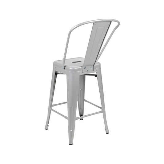 Commercial Grade 24" High Silver Metal Indoor-Outdoor Counter Height Stool with Removable Back