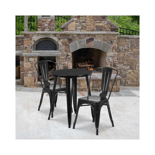 Commercial Grade 24" Round Black Metal Indoor-Outdoor Table Set with 2 Cafe Chairs