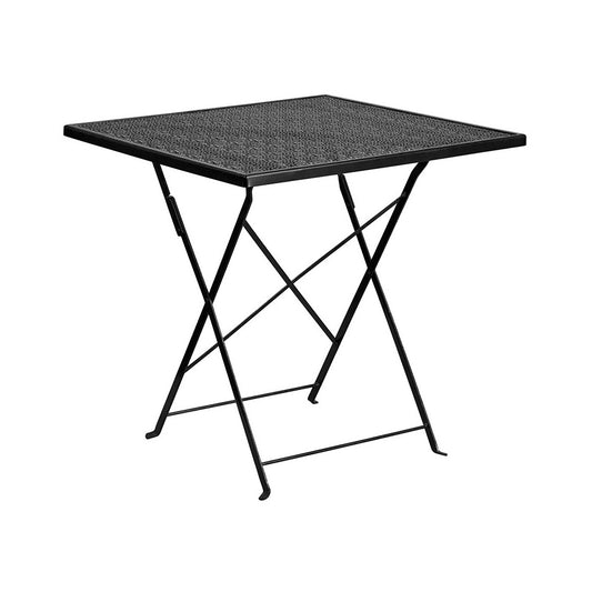 Commercial Grade 28" Square Black Indoor-Outdoor Steel Folding Patio Table Set with 2 Square Back Chairs