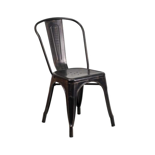 Commercial Grade 23.75" Square Black-Antique Gold Metal Indoor-Outdoor Table Set with 2 Stack Chairs