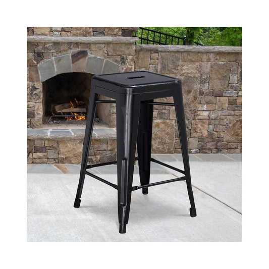 Commercial Grade 24" High Backless Distressed Black Metal Indoor-Outdoor Counter Height Stool