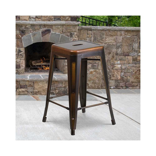 Commercial Grade 24" High Backless Distressed Copper Metal Indoor-Outdoor Counter Height Stool