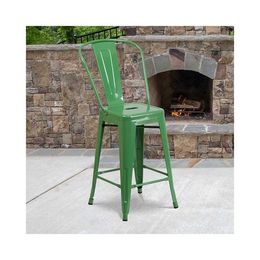 Commercial Grade 24" High Green Metal Indoor-Outdoor Counter Height Stool with Removable Back