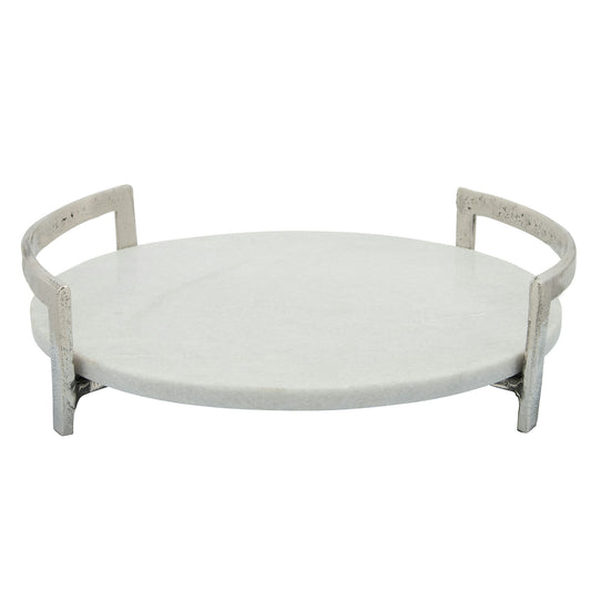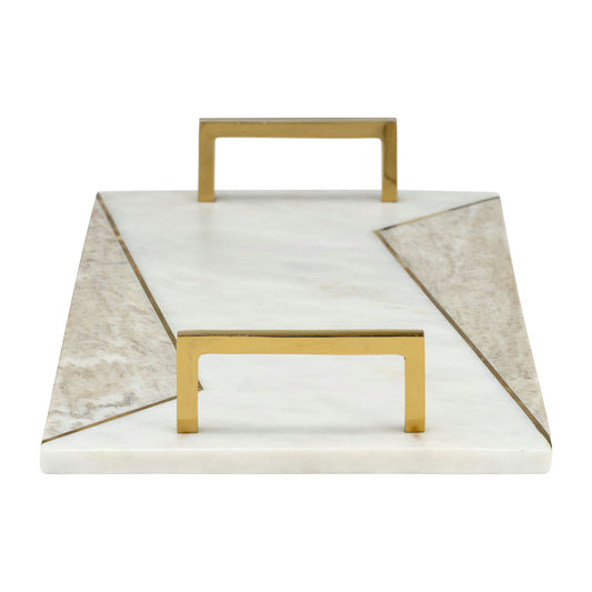 Marble, S/2 15/18"l 2-tone Trays W/ Handle, White